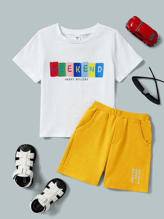 Summer Fun: Casual Car Pattern T-Shirt & Letter Print Shorts Suit