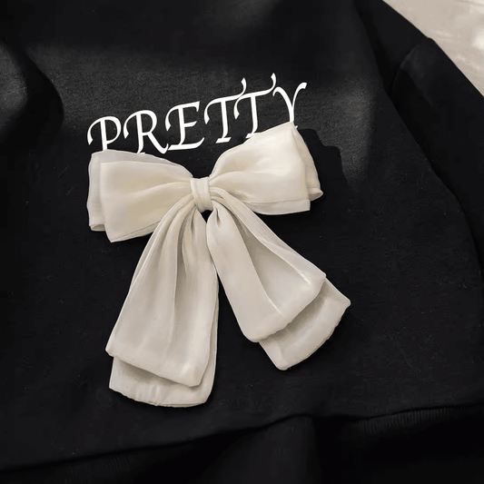 Stylish girls outfit with a modern touch - black top with stylish bowknot and attractive pleated jeans