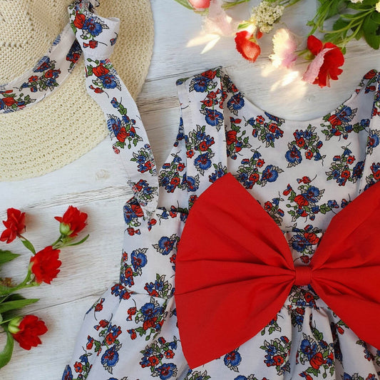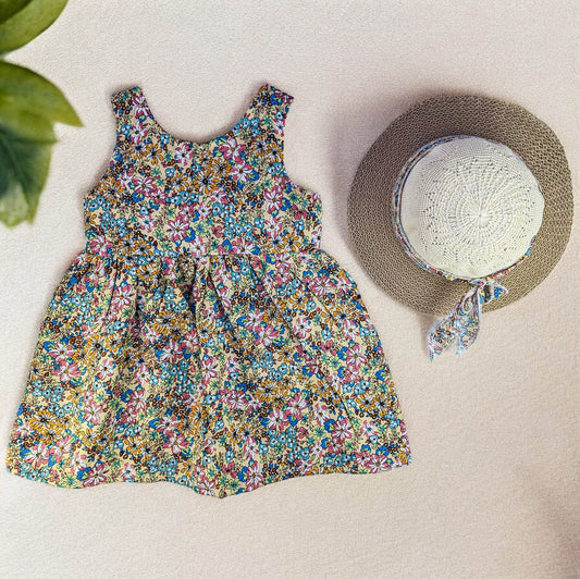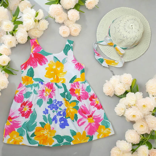 Charming Flower Dress & Hat Set – Bowknot Sleeveless Summer/Spring