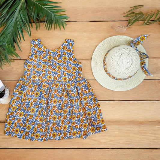 100% cotton leopard Dress & Matching Hat Set for Girls
