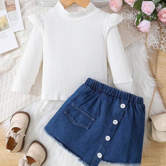 Stylish set for girls - ruffle t-shirt and trendy denim skirt ✨💙