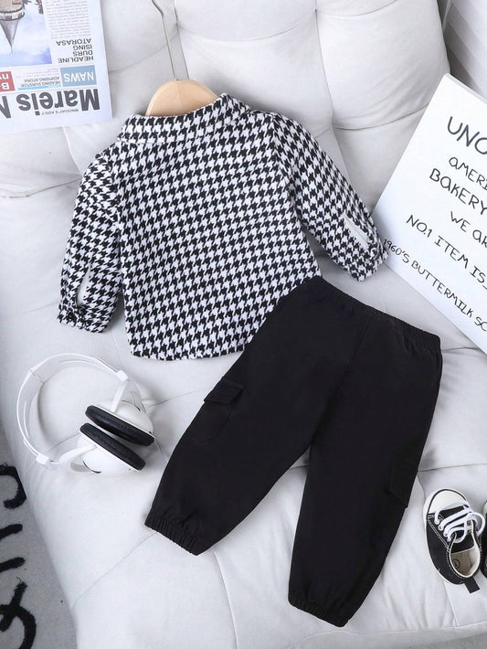 Ensemble pour garçon Playful Pals – Surchemise élégante à imprimé pied-de-poule + pantalon noir assorti, tenue décontractée et élégante pour le printemps et l'automne