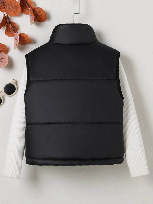 Manteau doudoune chic à col cheminée et fermeture éclair pour filles et garçons - Style décontracté avec confort sans manches