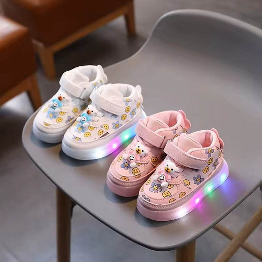 Chaussures lumineuses de dessin animé pour le printemps et l'automne - Chaussures de sport respirantes à lumière clignotante pour garçons et filles