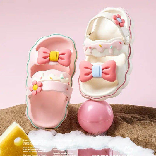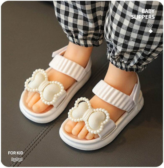 Jolies pantoufles d'été pour filles avec nœud papillon.