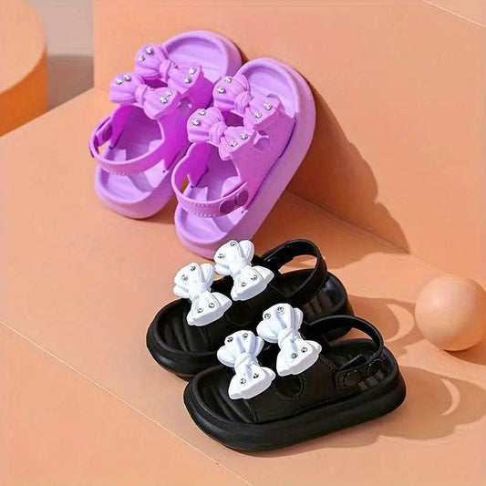 Sandales à bout ouvert tendance et mignonnes avec nœud papillon pour filles, sandales respirantes et antidérapantes pour la plage intérieure et extérieure