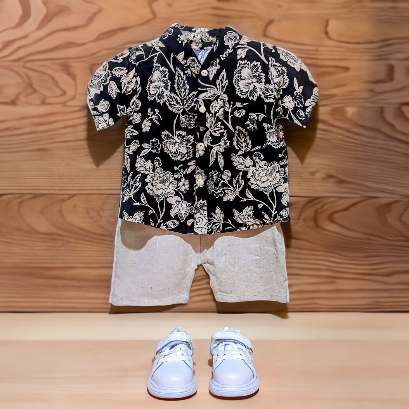 Ensemble T-shirt et short de qualité supérieure à motifs beiges et noirs pour enfants : un confort élégant pour les enfants à la mode !