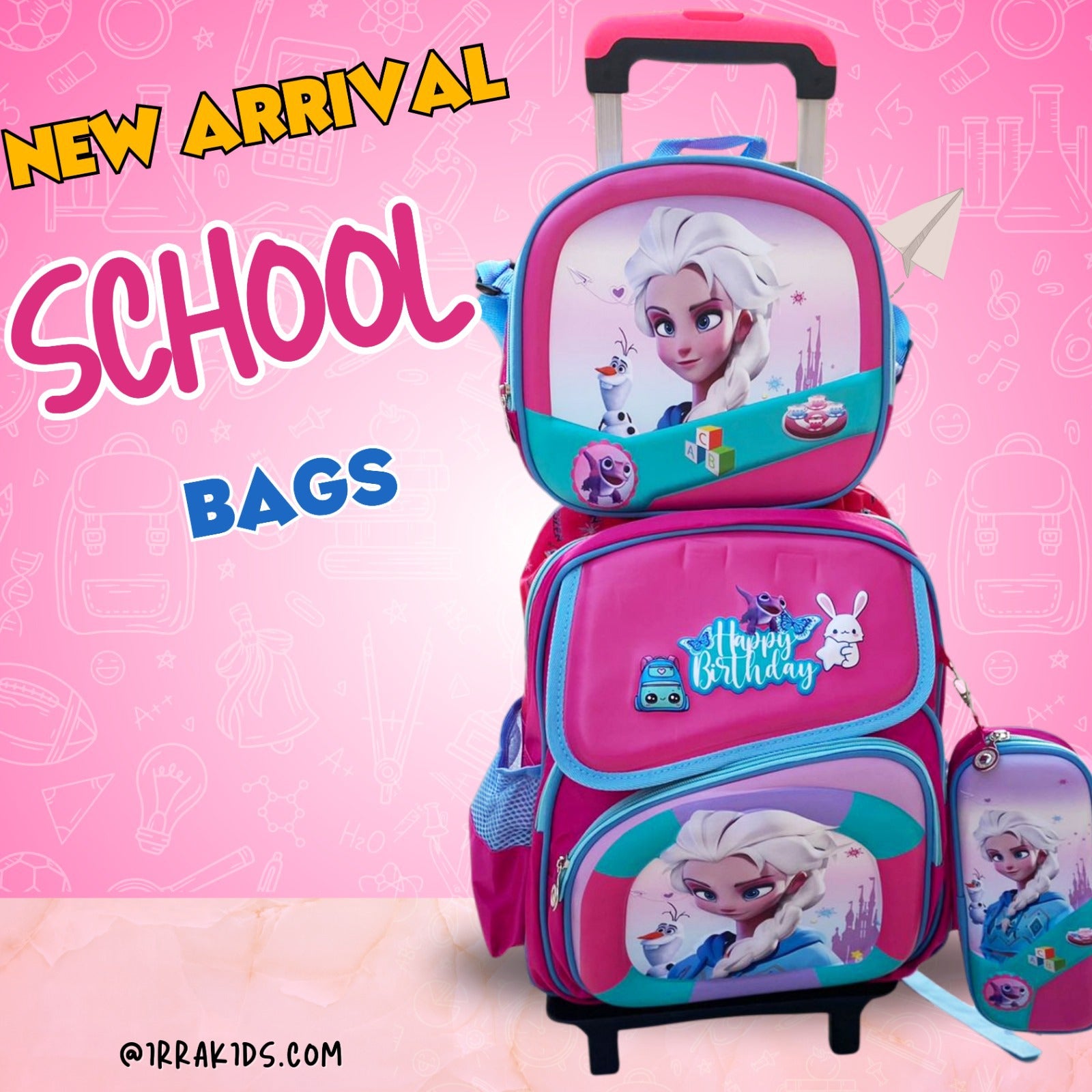 Ensemble de 3 sacs d'école à roulettes élégants au design de dessin animé pour enfants