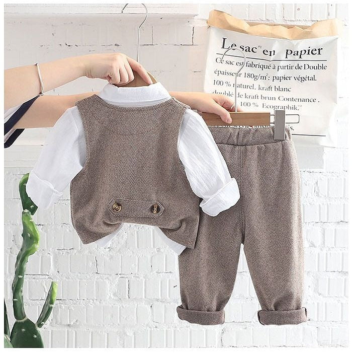 3-Piece Coordinated Set: Includes vest, long-sleeve shirt, and matching trousers
